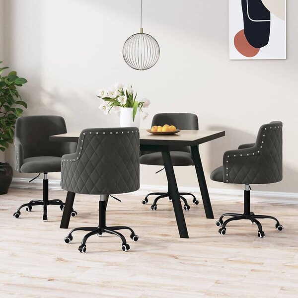 vidaXL Snurrbara matstolar 4 st mörkgrå sammet 3085070