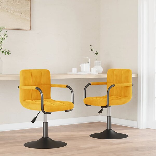 vidaXL Snurrbara matstolar 2 st senapsgul sammet 334624