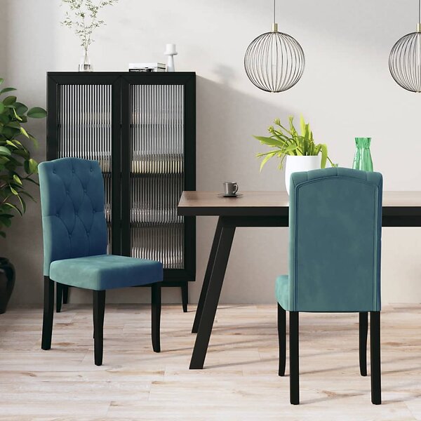 vidaXL Matstolar 2 st blå sammet 336909