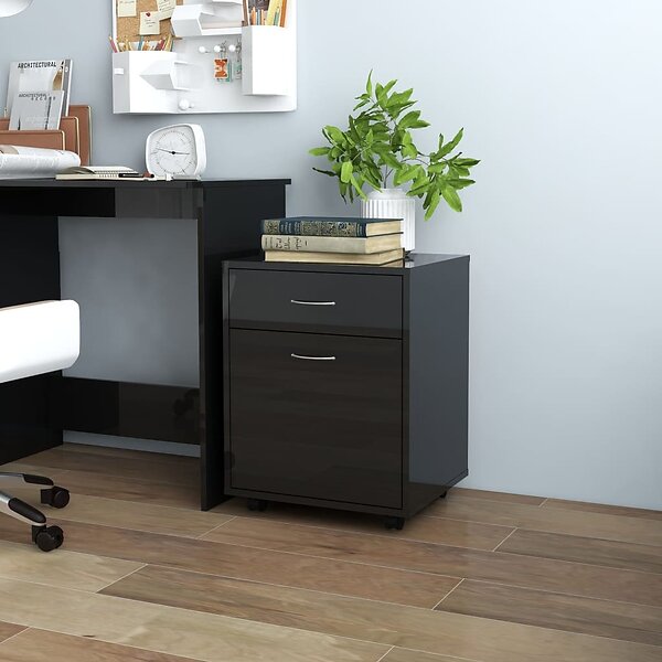 vidaXL Skåp med hjul svart högglans 45x38x54 cm konstruerat trä 808447
