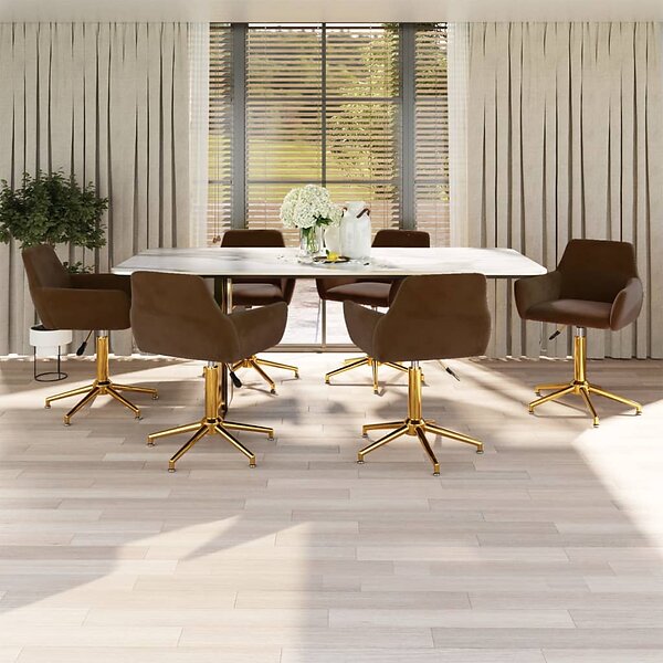 vidaXL Snurrbara matstolar 6 st brun sammet 3092783