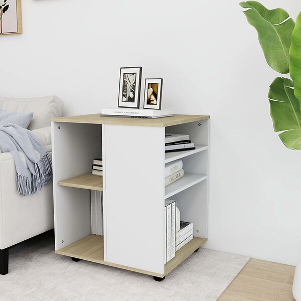 vidaXL rulleskab 60x53x72 cm konstrueret træ hvid og sonoma-eg