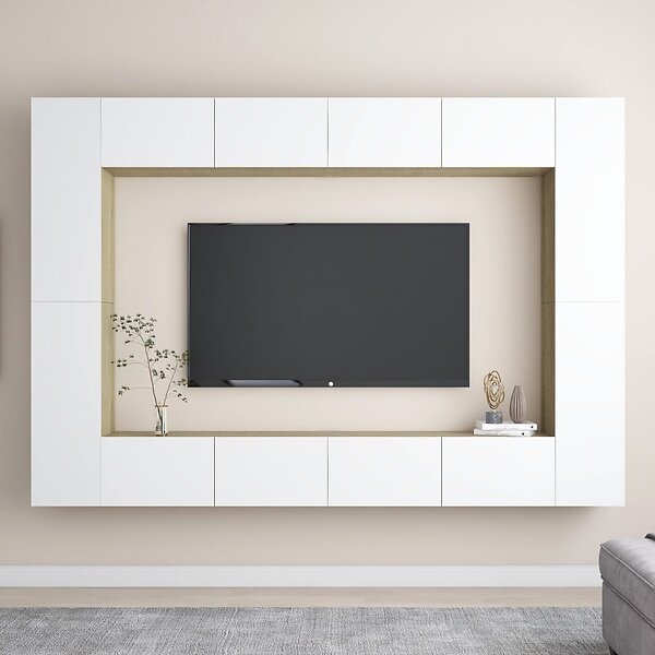 vidaXL TV-skåp 8 delar vit och sonoma-ek spånskiva 3079195