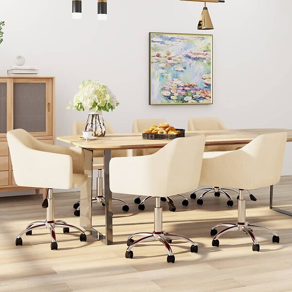 vidaXL Snurrbara matstolar 6 st gräddvit tyg 3092833