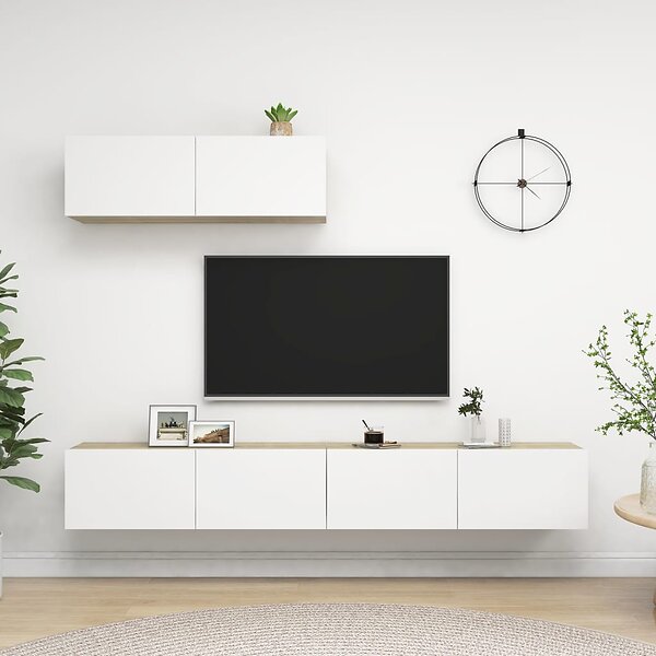 vidaXL TV-skåp 3 delar vit och sonoma-ek konstruerat trä 3079228