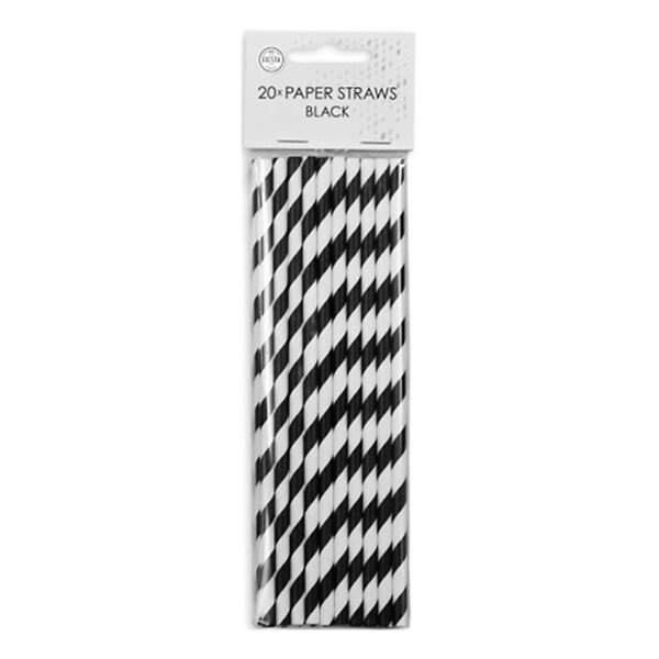 Globos Europe Papperssugrör Svart Randiga - 20-pack