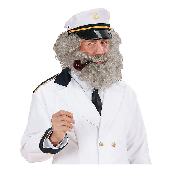 Sjökapten Peruk & Skägg Grå One size