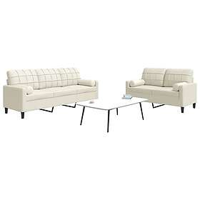 vidaXL Soffgrupp med kuddar 3 delar gräddvit konstlæder 3201349