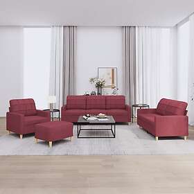 vidaXL Soffgrupp med dynor 4 delar Vinröd tyg 3201256