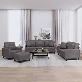 vidaXL Soffgrupp med kuddar 4 delar grå konstlæder 3201355