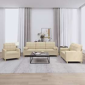 vidaXL Soffgrupp med kuddar 3 delar gräddvit tyg 3201260