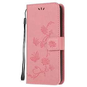 Inskal Huawei P Smart (2020) Läderplånbok Blommor och fjärilar rosa