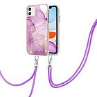 Inskal iPhone 11 Skal med Justerbar rem Lila Marmor