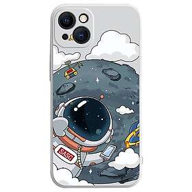 Inskal iPhone 14 Skal Flexibel Plast Astronaut På Månen Vit