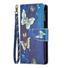 Inskal Samsung Galaxy A73 (5G) Läderfodral m. Stor plånbok blå fjärilar