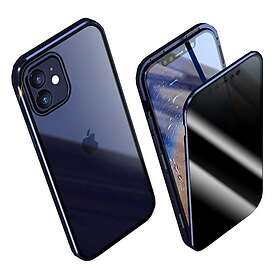 Inskal iPhone 12 12 Pro Magnetiskt Skal Sekretess med Glas Framsida och Baksida Mörkblå
