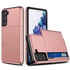 Inskal Samsung Galaxy S21 Tåligt Hybidskal med Korthållare Rött Guld