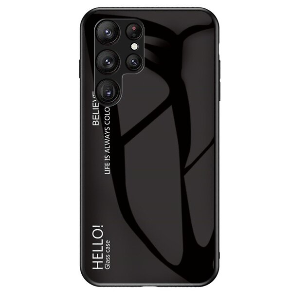 Inskal Samsung Galaxy S23 Ultra Skal med Glasbaksida Hello Svart