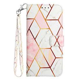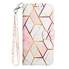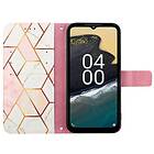 Inskal Nokia G60 Läder Plånboksfodral Marmor Rosa Vit