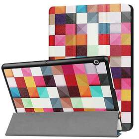 Inskal Huawei Mediapad T3 10 9.6" Skal Tri-Fold Leather Case" Färgglada rutor "M