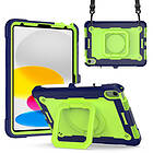 Inskal iPad 10.9 (2022) Silikonskal med 360 Graders Ställ & Bärrem Grön Blå