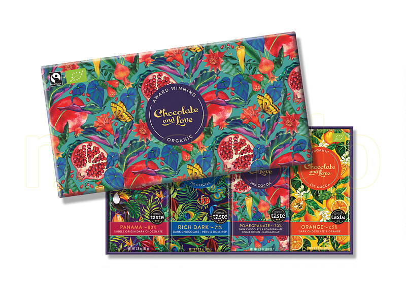 Chocolate and Love Presentbox Panama, fyldig mørk, granatæble & orange 320g