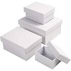 Creativ Company Askar Rektangulära 4 st/ 1 Set askar, vit, H: 3.5+4.5+5.5+6.5 cm