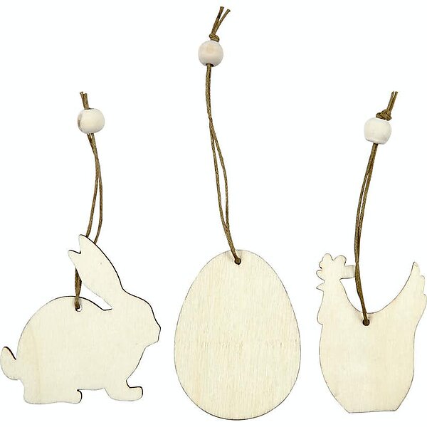Creativ Company Trädekorationer Kanin Ägg Höna Stl 6 cm Tjocklek 3 mm 9 St/1 Förp Trädekorationer, kanin, ägg, höna, stl. cm, tjocklek mm, 5
