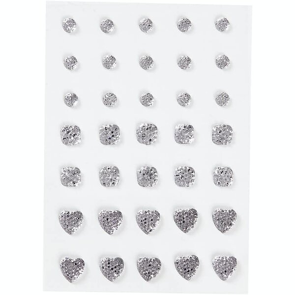 Creativ Company Rhinestones (Rund, Fyrkant, Hjärta) 35 St/1 Förp Rhinestones, silver, (rund, fyrkant, hjärta), stl. 6+8+10 mm 24377