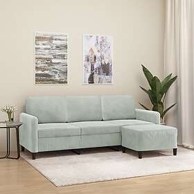 vidaXL 3-sæderssoffa med fodskammel ljusgrå 180 cm sammet 3201174