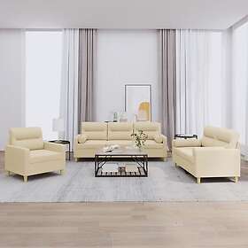 vidaXL Soffgrupp med kuddar 3 delar gräddvit tyg 3201554