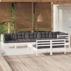 vidaXL Loungegrupp med dynor 9 delar vit massiv furu 3096461