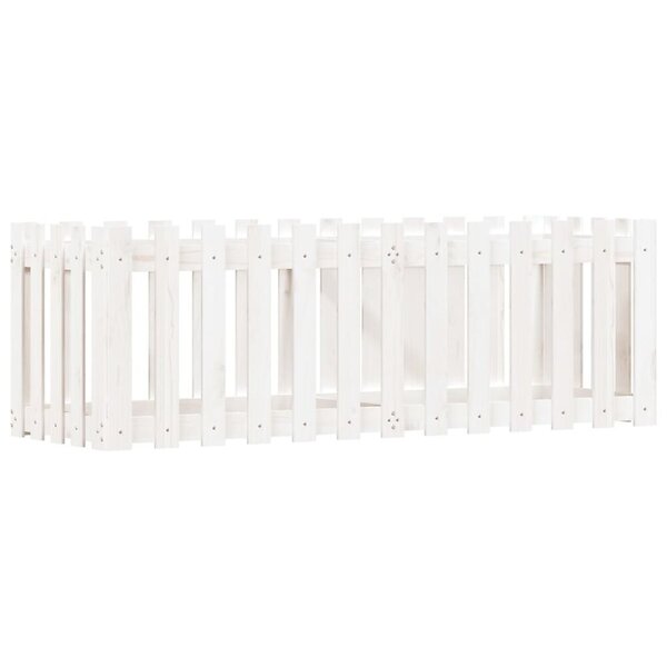 vidaXL Odlingslåda med staket-design vit 150x50x50 cm massiv furu 832493