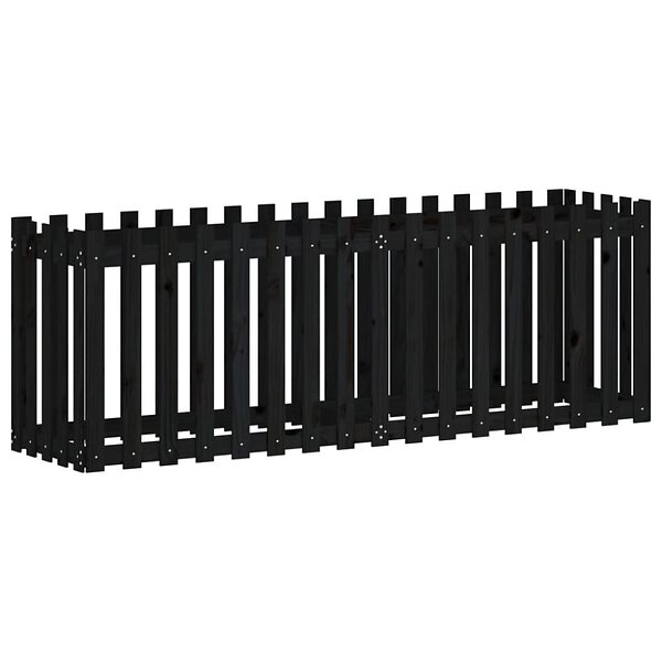 vidaXL Odlingslåda med staket-design svart 200x50x70 cm massiv furu 832514
