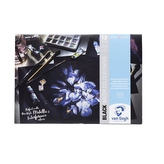 Van Gogh Royal Talens Watercolour Paper Pad Noir – A4-akvarellblock med 12 svarta ark 360 GSM