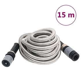 vidaXL Slange med sprøjtedyse Sølv 0.6" 15m Rustfrit stål