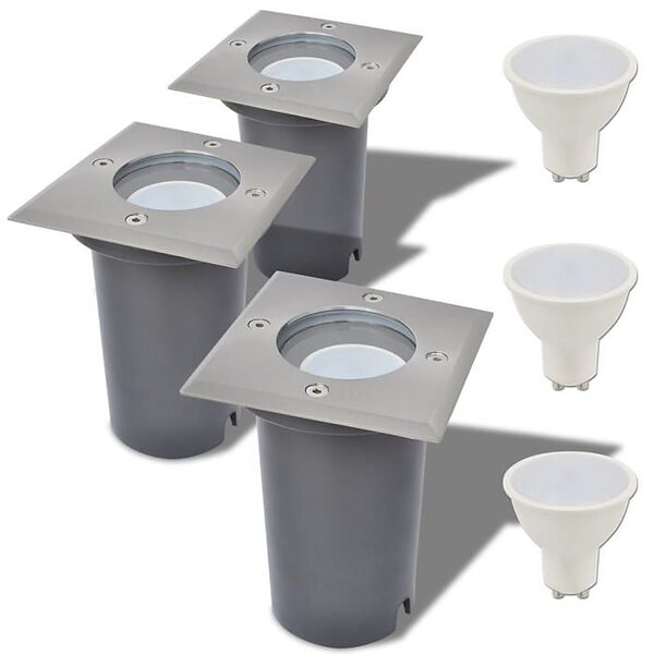 vidaXL Utomhusmarklampa med LED 3 st fyrkantiga
