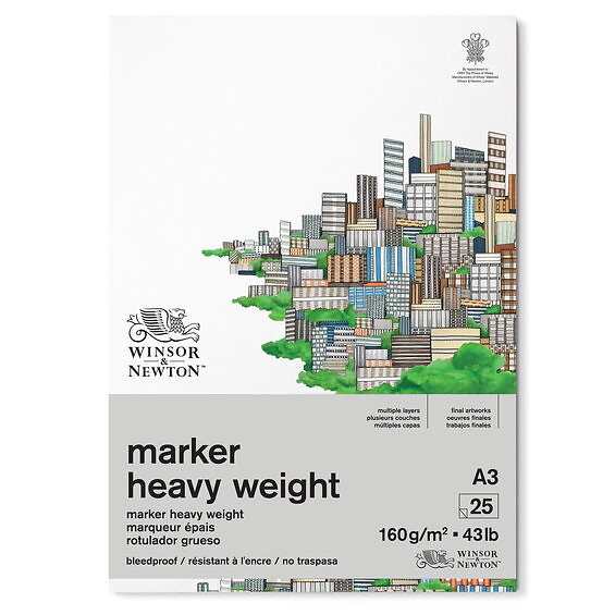 Winsor & Newton Marker Heavy Weight Bleedproof A3 (297x420 mm), 25 ark – 160 grams ytvikt