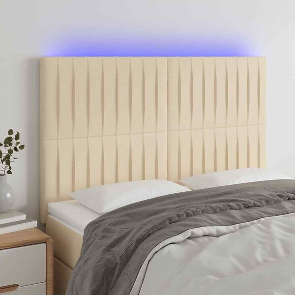vidaXL Sengegavl LED gräddvit 144x5x118/128 cm tyg 3122665