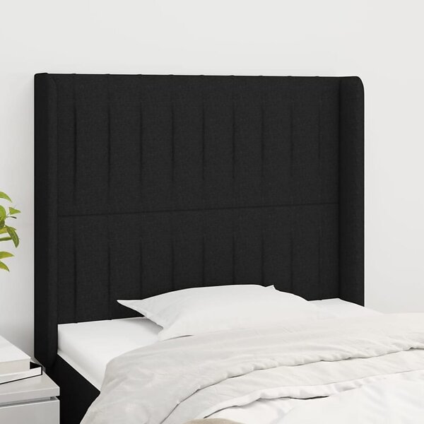 vidaXL Sengegavl med kanter svart 103x16x118/128 cm tyg 3119810