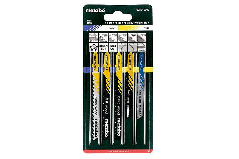 Metabo Sticksågsbladsats Sticksågbladssortiment 2, trä+metall+plast, 5 delar