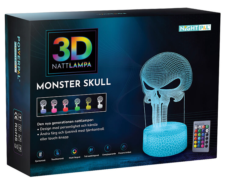 NightPal Powerpal 3D-Nattlampa, Monsterskalle