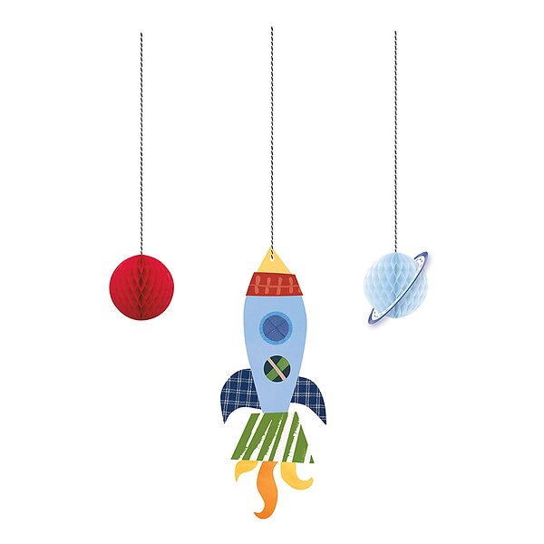 Unique Party Raket & Planet Honeycomb Hængende Dekoration 3-pak