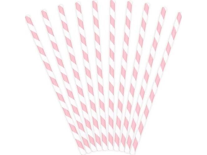 PartyDeco Papperssugrör Ljusrosa/Vita