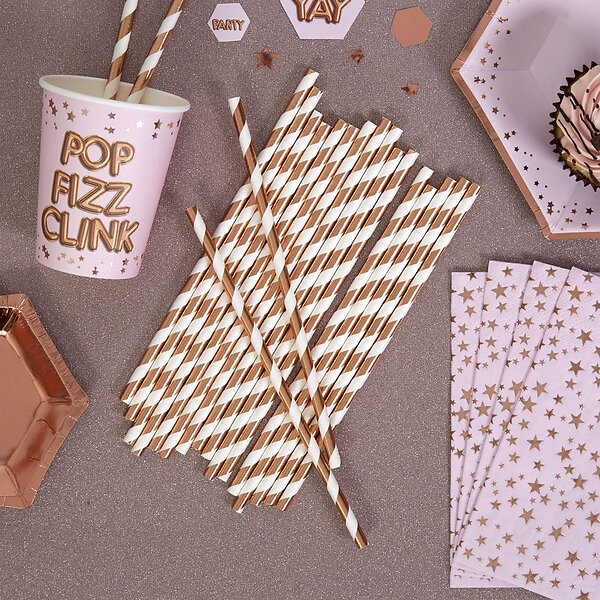 Globos Europe Papperssugrör Roséguld Metallic Randiga 20-pack