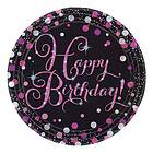 Glitter Papperstallrikar Happy Birthday Black/Rosa 8-pack