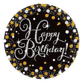Glitter Papperstallrikar Happy Birthday Silver/Guld 8-pack