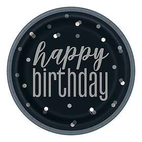 Unique Party Svarta Papperstallrikar Happy Birthday 8-pack