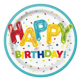 Unique Party Papperstallrikar Ballonger Happy Birthday 8-pack