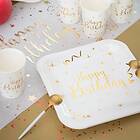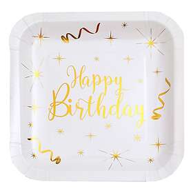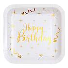 Santex Papperstallrikar Happy Birthday White/Guld 10-pack